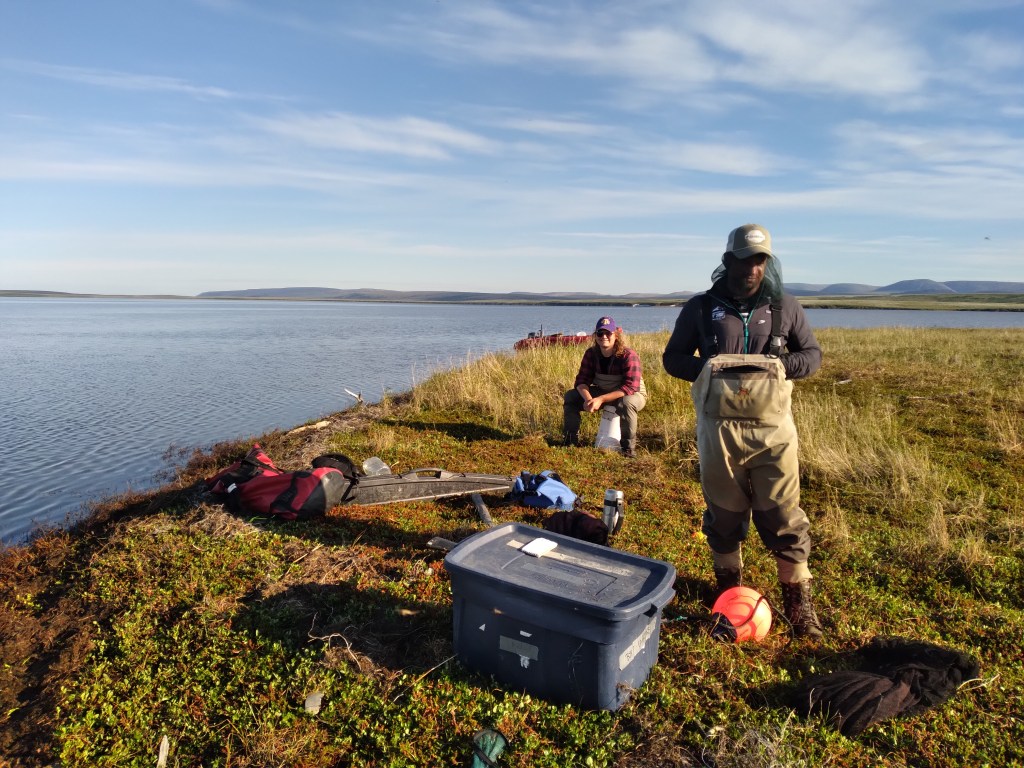 We flew to the landing strip at the former Project Chariot nuclear harbor site near Cape Thompson, Alaska and boated south down the coast to assess several lagoons for water quality, fish diversity and abundance, and bird diversity and abundance. These lagoons (and two others north of Cape Thompson) had previously been sampled by WCS in 2018. Weather was rainy and several days were windy and rainy enough to require staying in the tent. Mosquitos were very bad when on shore and required headnets.