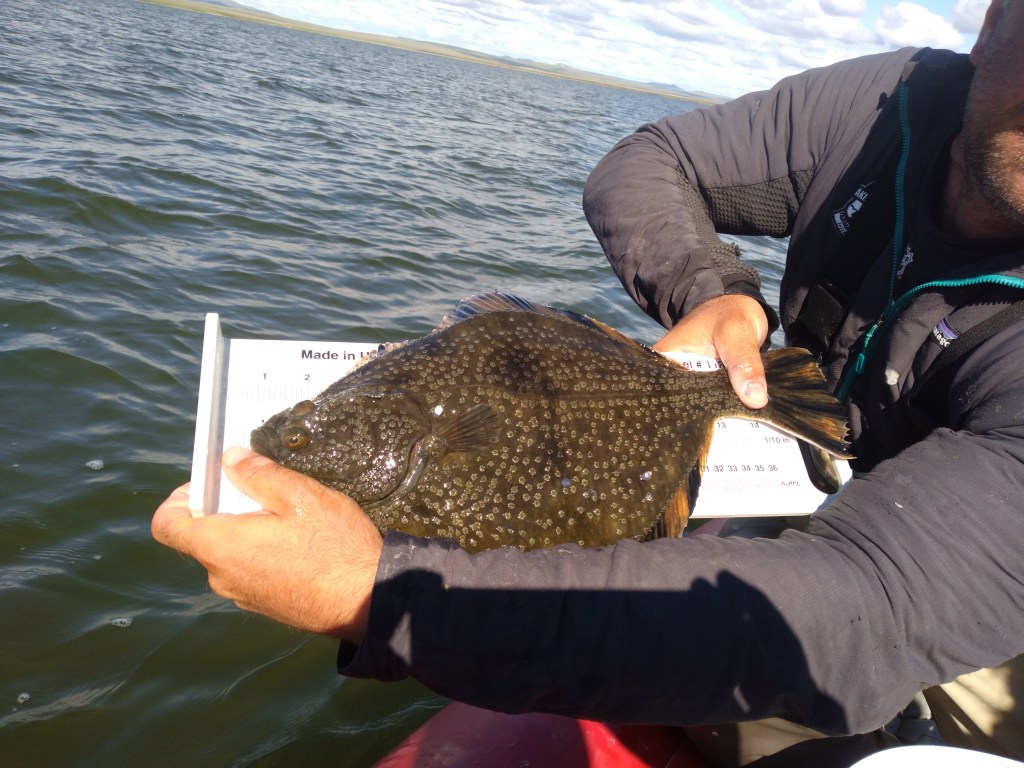 Through our fyke netting, angling, beach seining, and tangle netting efforts we found that humpback whitefish, least cisco, stickleback, and pond smelt were abundant at all sites in Kotlik and Krusenstern Lagoons. Sheefish were also caught in both lagoons. Saffron cod and starry flounder were seen in high numbers in Kotlik Lagoon. Additionally, a large aggregation of Dolly Varden were found at the Jade Creek inlet to Kotlik Lagoon. Several broad whitefish were captured in Krusenstern Lagoon, this species is not common in these lagoons based on historical data. Arctic grayling were captured at lagoon inlet areas of Kotlik and Krusenstern Lagoons. Aukulak Lagoon was devoid of fish because it had winterkilled and lacked a connection to the ocean.