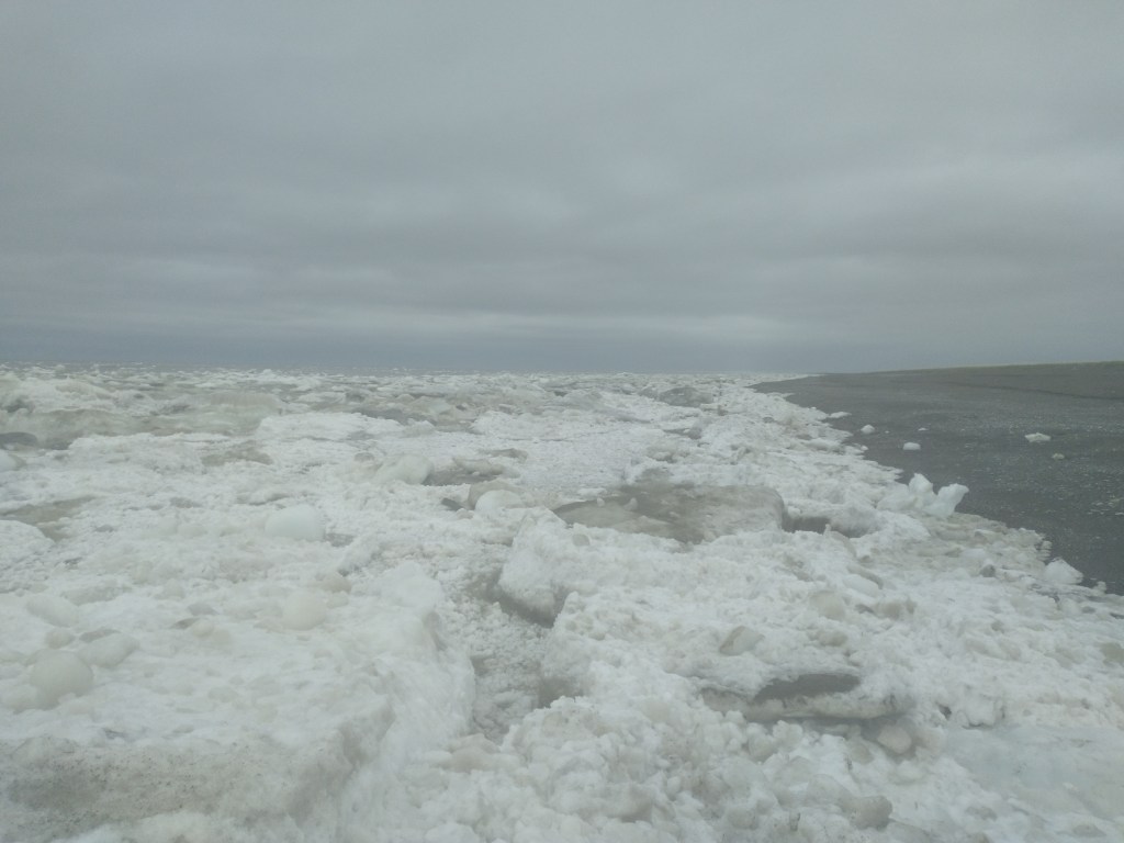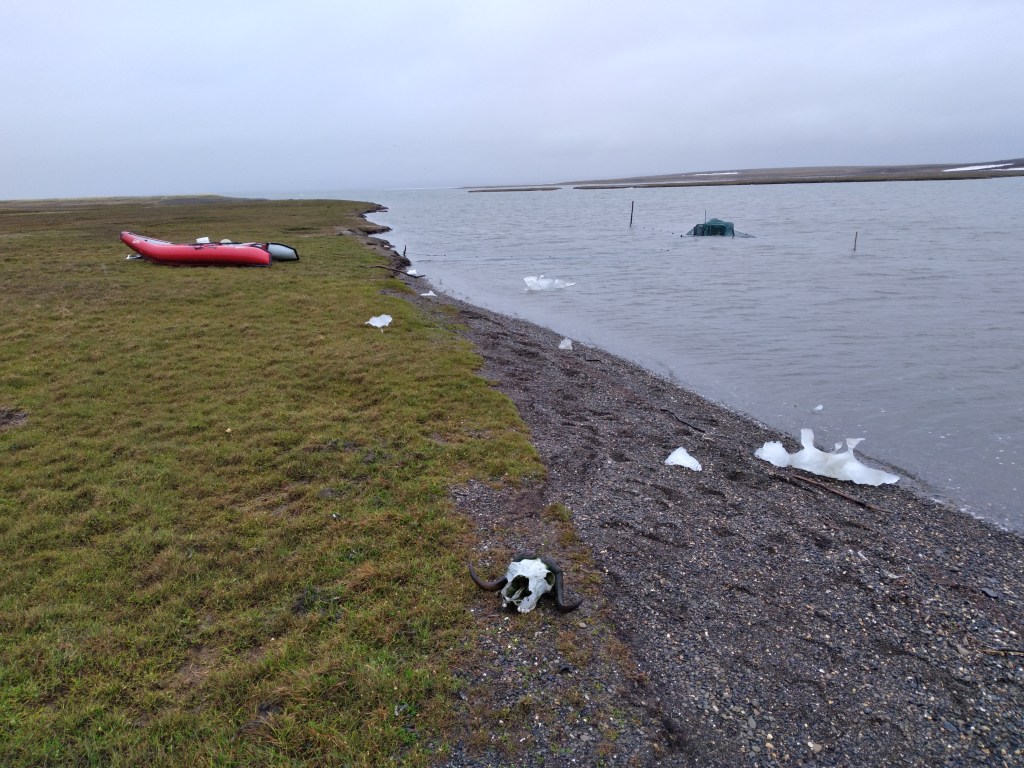 During the June trip, all lagoons were open to the sea and ice chunks clogged the Chukchi Sea coast and lagoon openings due to a late spring. Biting insects were not yet out in force and headnets were not needed. Weather was mostly sunny, but several days were too windy to conduct sampling.
