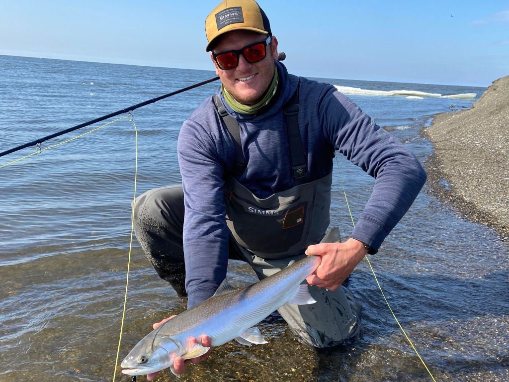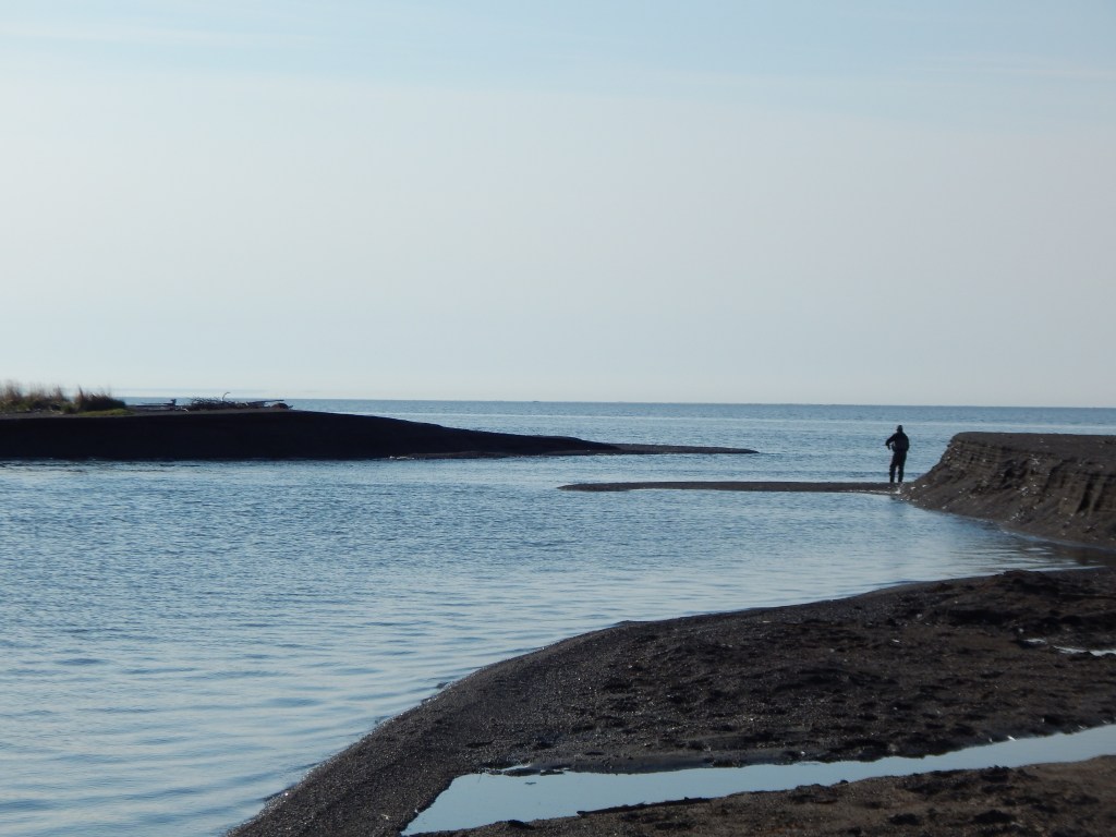 We explored upstream along freshwater tributaries to Krusenstern and Kotlik Lagoons (Situkuyok River and Killikmak Creek, respectively) to capture Arctic grayling for genetic fin clips. Grayling were present in the Situkuyok River and were observed to be traveling upstream to spawn. We caught several via angling methods and fin-clipped them. We also noted beaver activity along the river. No grayling were observed in Killikmak Creek, though we did catch some at Jade Creek, another tributary feeding Kotlik Lagoon.