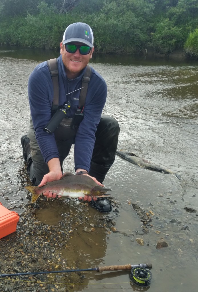 In addition to our standard fisheries monitoring program, the Alaska Department of Fish and Game Salmon Genetics Lab requested that we collect fin clips from any salmon encountered in the rivers feeding the coastal lagoons. The abundance of salmon in the Arctic is thought to be increasing, and managers are collecting genetic information from rivers with no data to establish a baseline and assess changes in populations