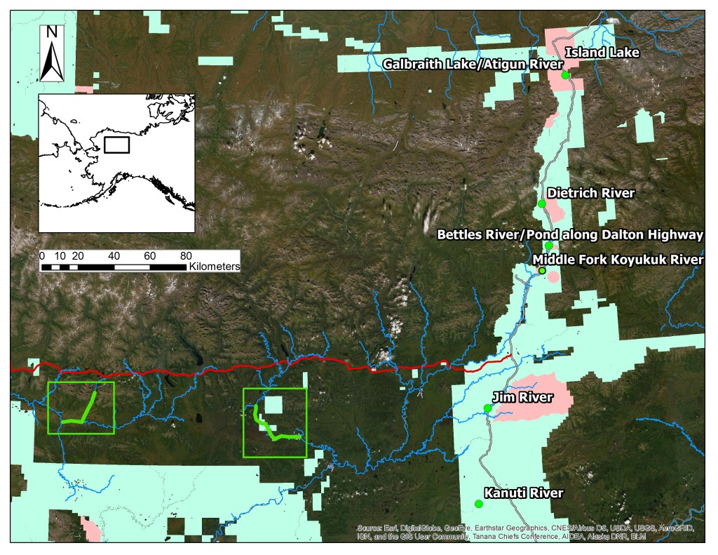 Samples collected in 2023 are currently being processed in the laboratory and will be sent to an external lab for testing. Follow-on sampling for PFAS concentrations and addition of new waterbodies (John River, Alatna River, and Koyukuk River near Bettles, AK) will occur in summer 2024
