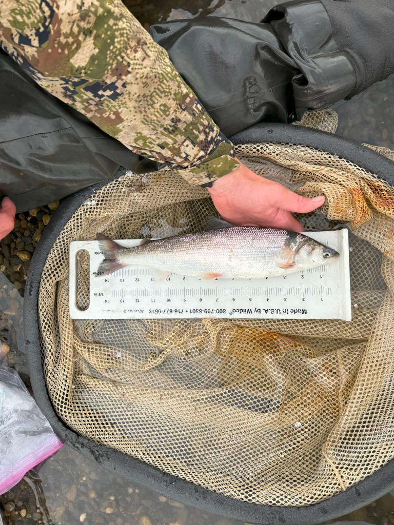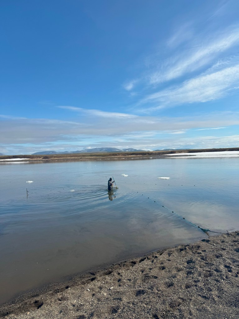 Largely, the weather was good for this trip despite some cold and windy days. Patches of snow and ice were present at the beginning of the trip, but mostly melted off by the time we departed. The initial colder temperatures kept the mosquitoes at low abundance, which was advantageous for sampling. Overall, fish abundance was lower than usual at most sites. However, Dolly Varden and Bering cisco were more prevalent than in previous years. Both of these species are prized subsistence harvest resources, particularly Bering cisco, which we have found to be particularly rich in lipids and proteins.