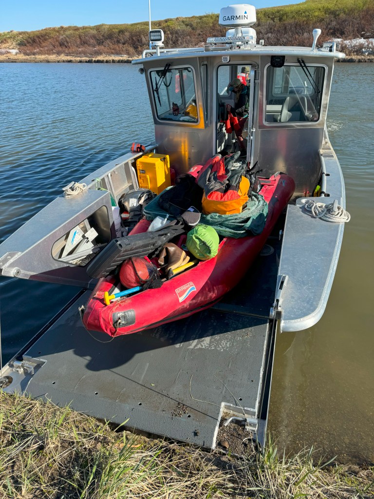 During the time that we were in the field, NPS staff were visiting the Anigaaq Ranger Station, and we spent time with them and accompanied them on a trip towards Krusenstern Lagoon in their new landing craft, to facilitate access to our sampling sites.