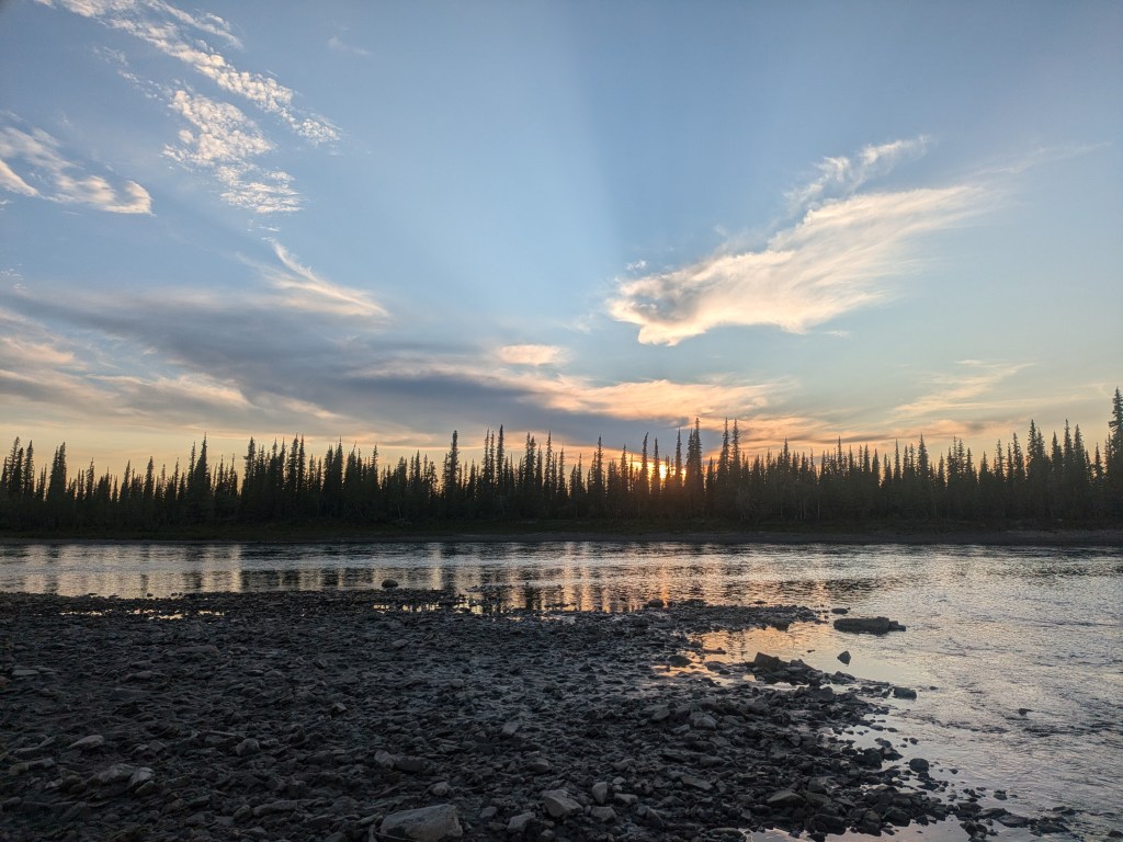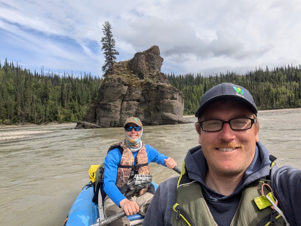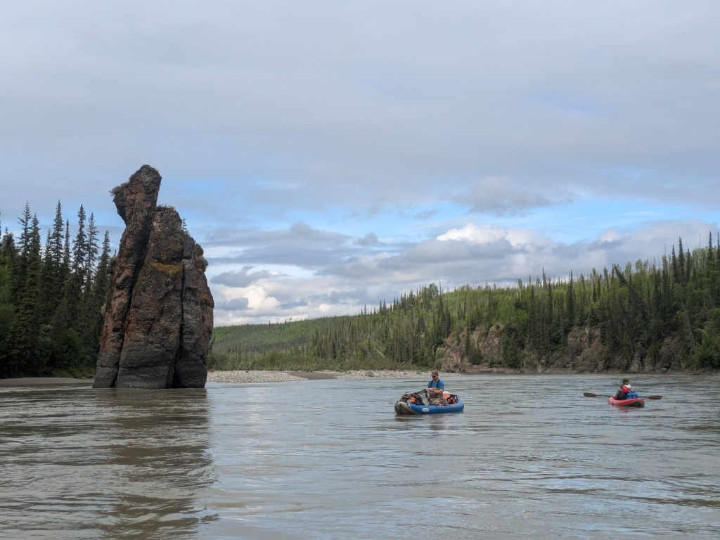 First, in early July, we floated the Koyukuk River from the town of Coldfoot, AK along the Dalton Highway to the village of Bettles, AK. This 50+ mile float is quite scenic, including bedrock cliffs, Bishop’s Pulpit rock, and the historic mining settlement of Tramway Bar, but features no whitewater and few hazards. Water levels were slightly high, especially at the beginning of our float, but we managed to use a combination of tangle netting and angling to collect northern pike, Arctic grayling, whitefish, longnose suckers, slimy sculpins, and lake chubs. We also sampled aquatic invertebrates, sediment, and vegetation at several locations. No other float parties were encountered, though motorized boats with locals from Bettles were seen on the final day of the trip.