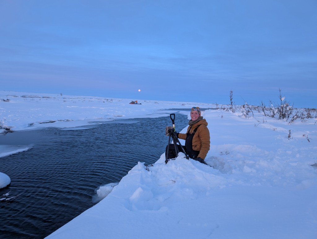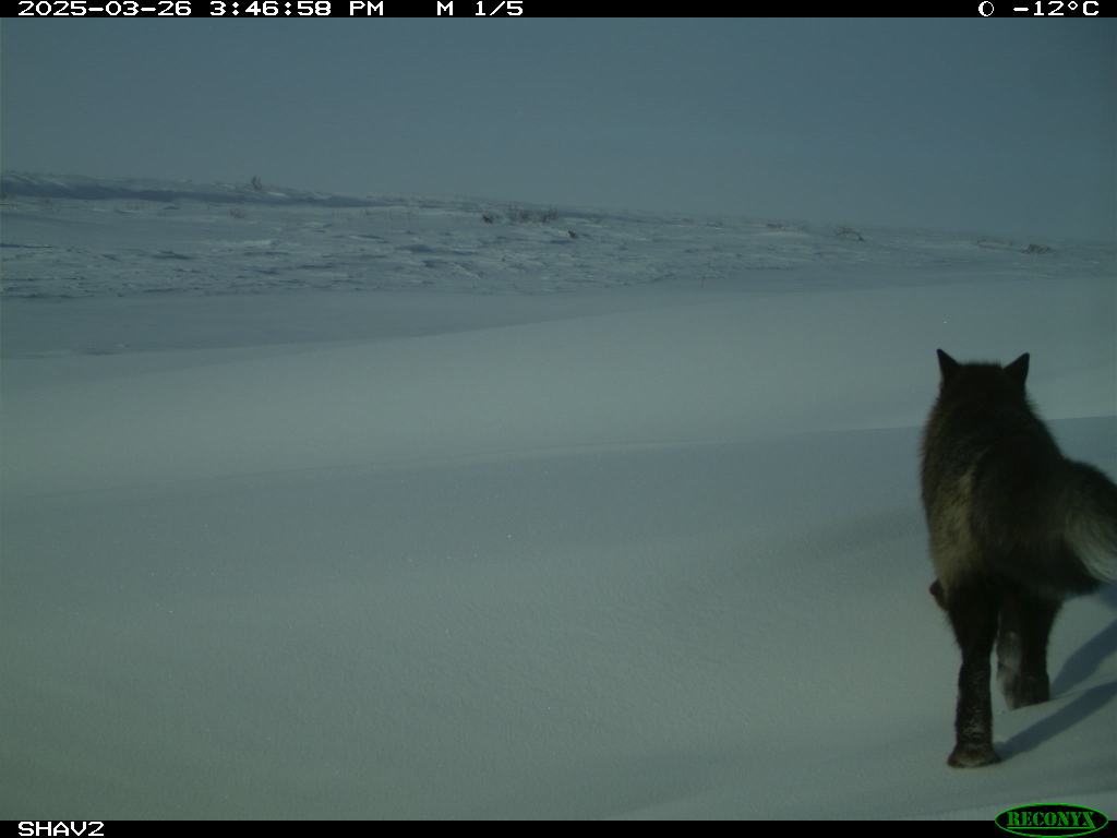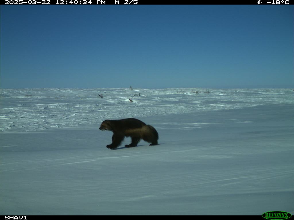 In January 2025, a WCS field crew visited the Shaviovik River fish overwintering area (where a fish mass mortality event and subsequent wolverine scavenging was documented in 2022) to install dissolved oxygen loggers to monitor habitat quality for fish under the ice, and game cameras to characterize the frequency of visits by terrestrial scavengers.