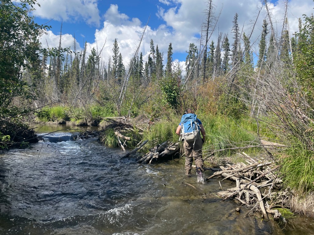 Working with Yukon Territory summer students, Ta’an Kwäch’än Council’s Kadin Hare and Lands and Resources team were able to temporarily lower 5 beaver dams on Fox Creek to encourage fish passage in July 2025, just before the expected Yukon River Chinook salmon run. Ta’an Kwäch’än Council is updating their restoration plan for Fox Creek with a focus on maintaining connectivity for juvenile rearing, and restoring adult spawning habitat with beaver management. This includes removing dams after mid-July when they are no longer juvenile salmon overwintering habitat, and after grayling spawning period. Doing this will flush all the silt to return gravels important to salmon spawners.