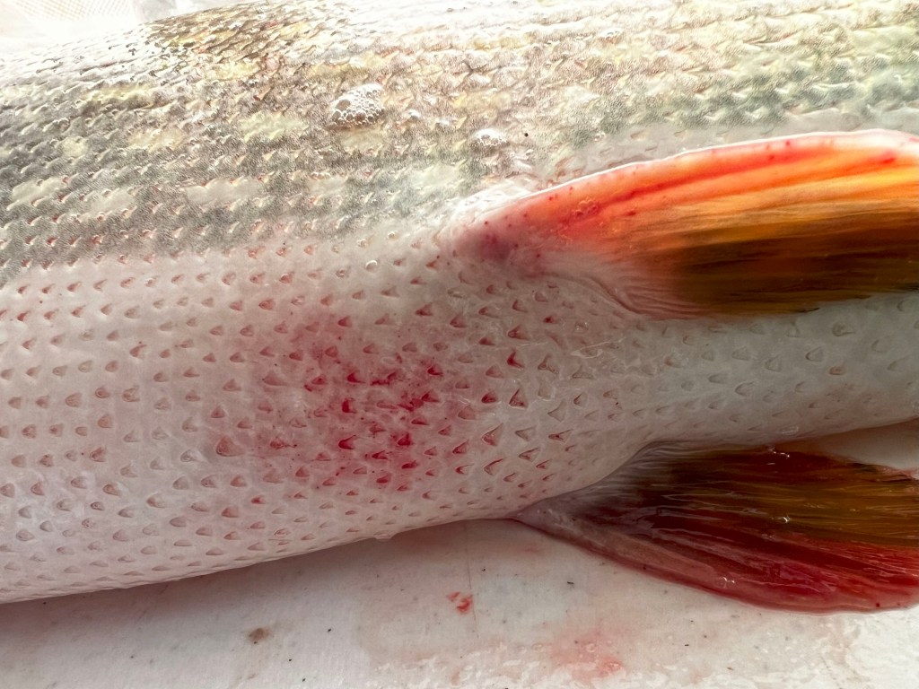 Pike with heavy leech infestation exhibit skin abrasions and often seem to be in poor body condition.