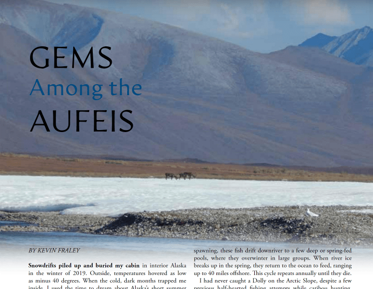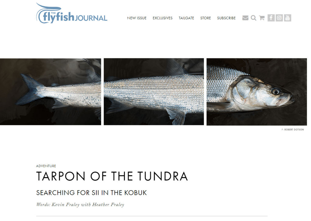 “Tarpon of the Tundra” in Autumn 2021 issue of Fly Fish Journal: Adventure story recounting float fishing the Kobuk River, with fish science information and notes about the Ambler Road conservation threat