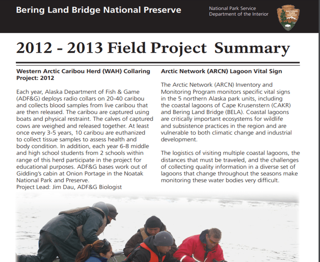–Bering Land Bridge 2012-2013 Field Project Summary